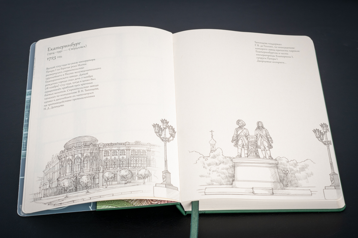 Блокнот «Города. Екатеринбург», зеленый от официального дилера Parker в Караганде. Все ручки Паркер поставляются в фирменном футляре.