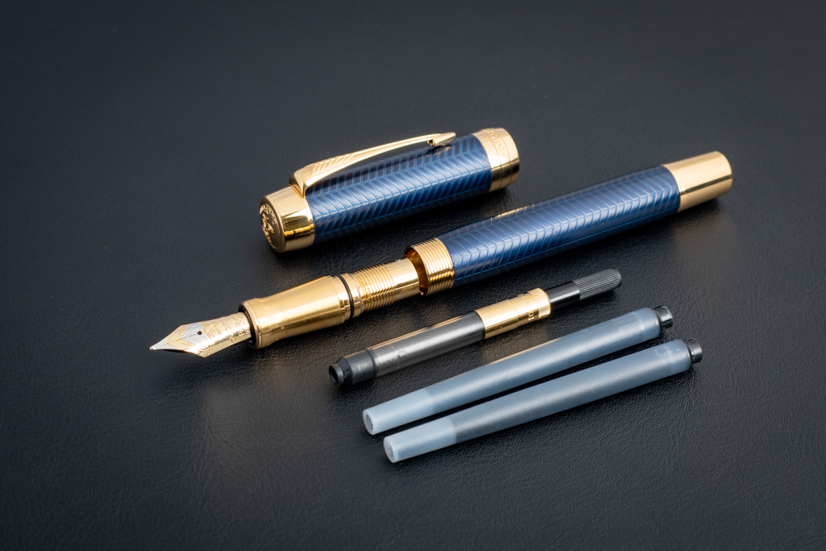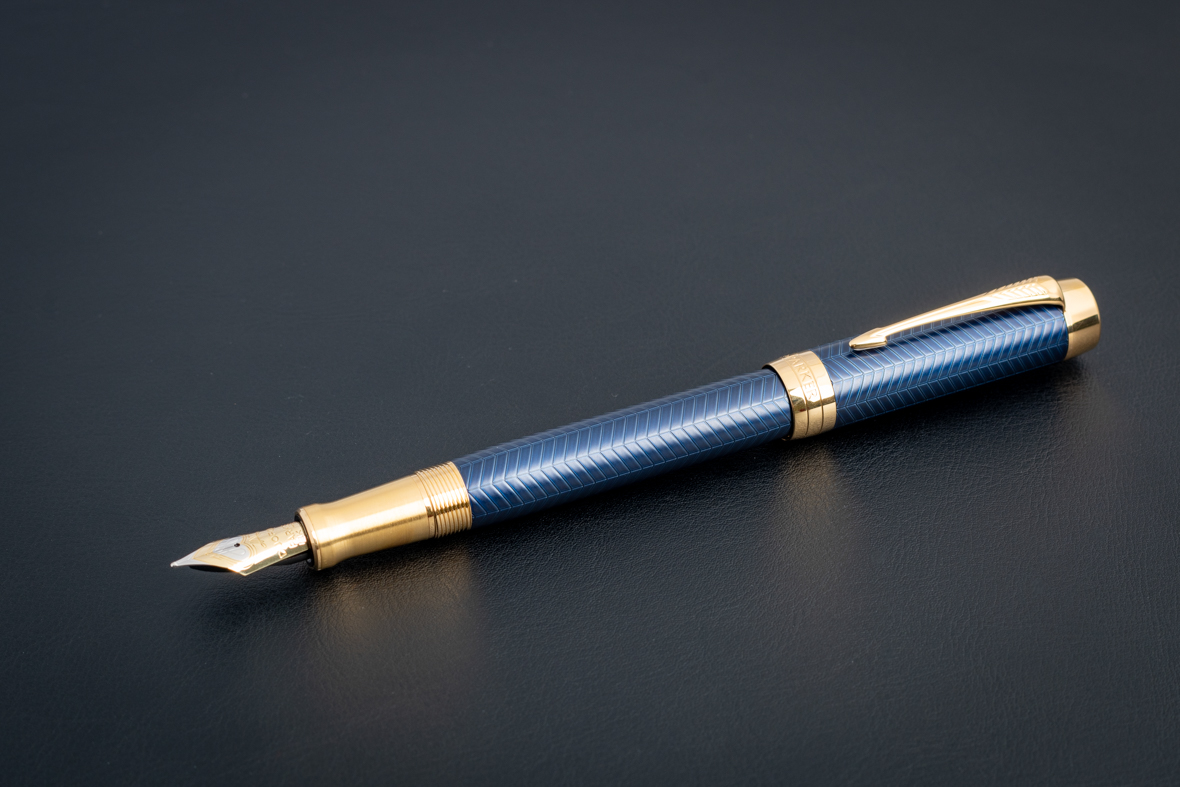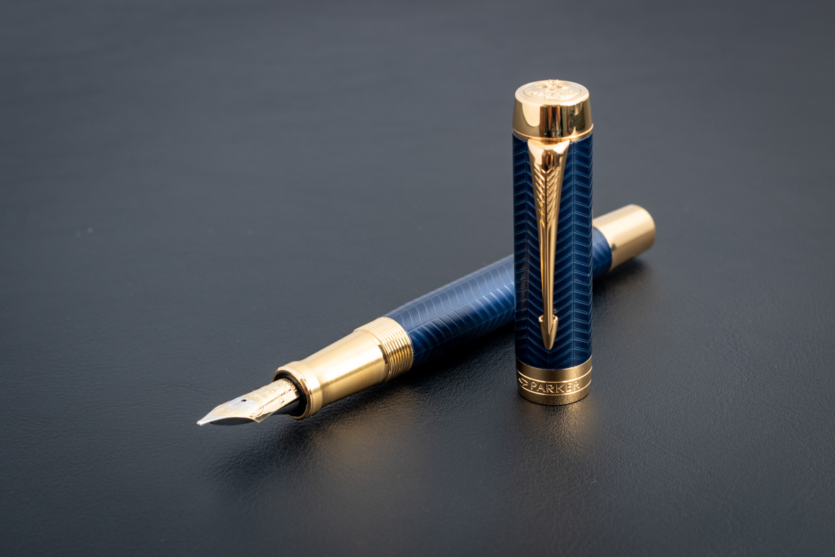 Перьевая ручка Parker Duofold Prestige Centennial Blue Chevron GT (M) от официального дилера Parker в Караганде. Все ручки Паркер поставляются в фирменном футляре.