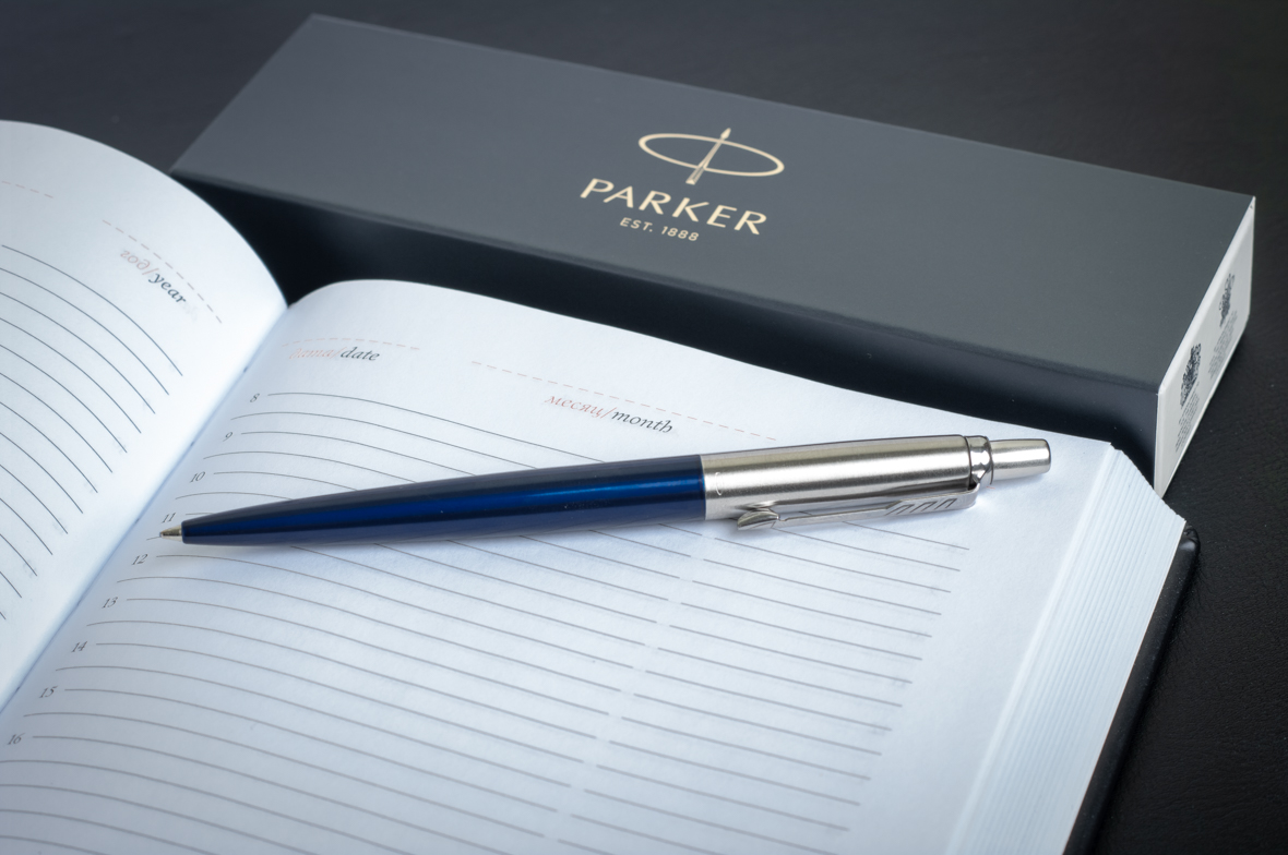 Шариковая ручка Parker Jotter Royal Blue CT от официального дилера Parker в Караганде. Все ручки Паркер поставляются в фирменном футляре.